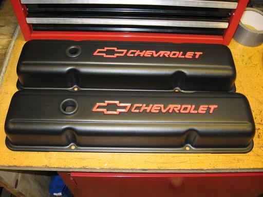 It looks like it's time to go back to stock height valve covers. No problem, I still have the original covers from the 305 and they're in great shape: